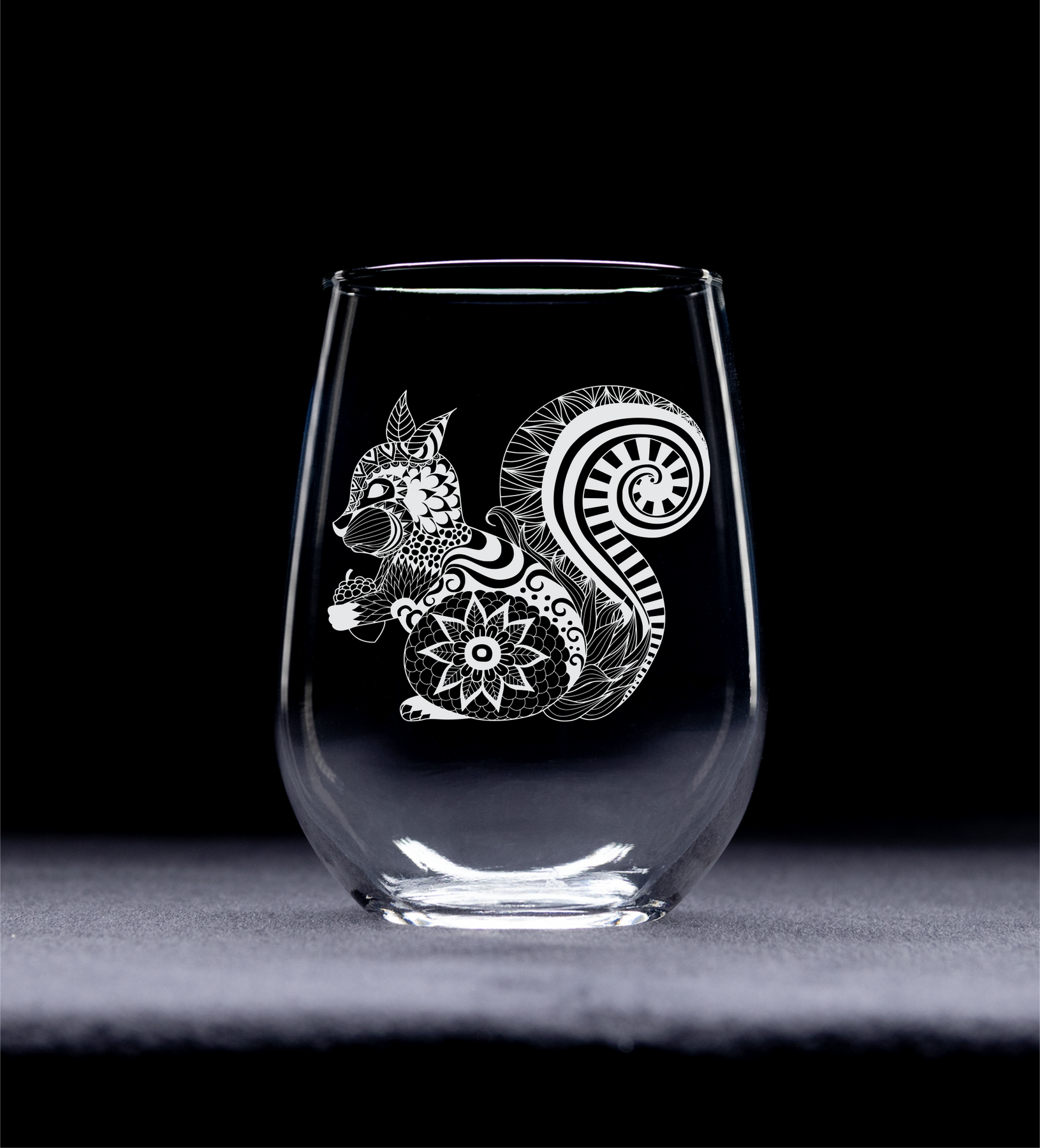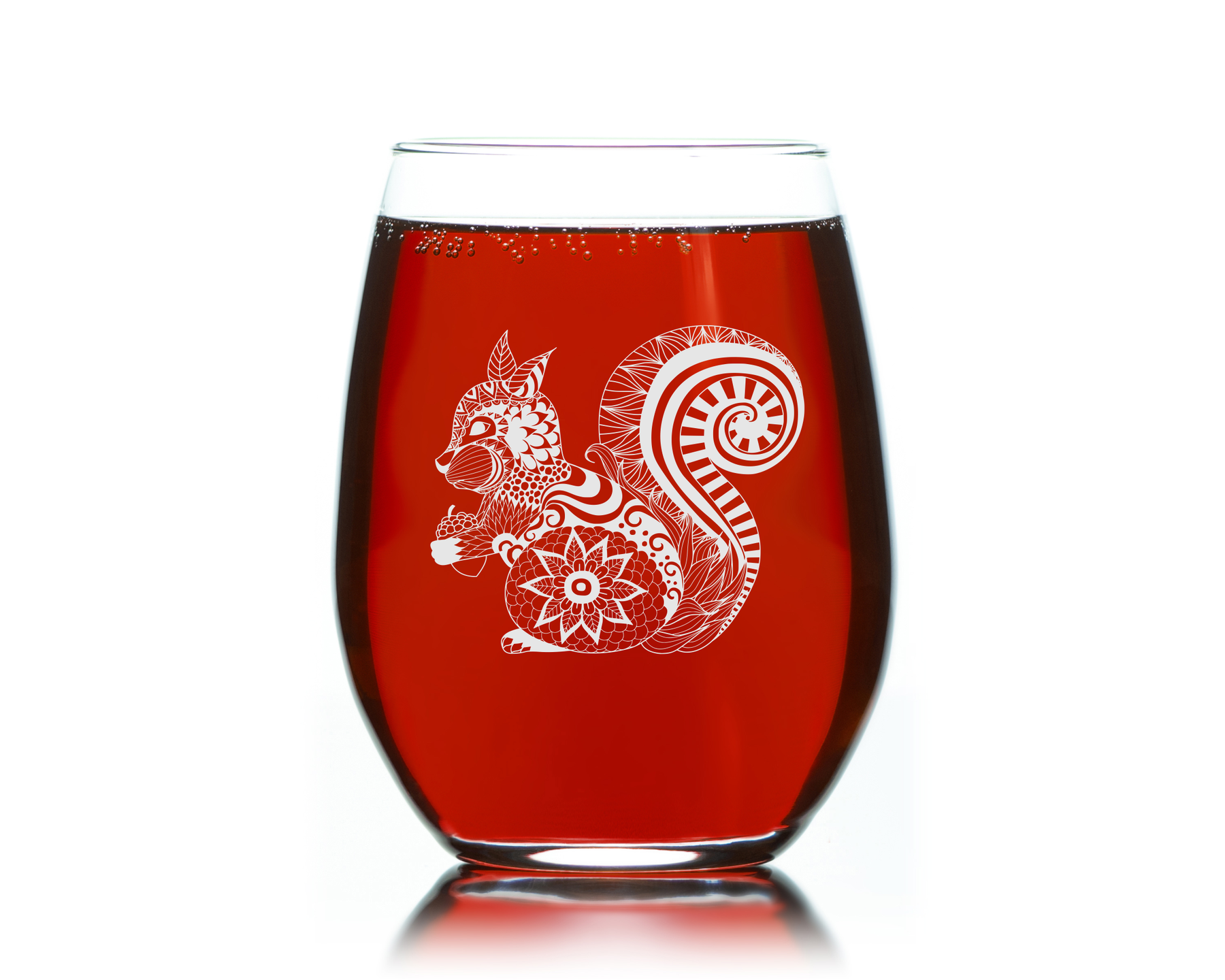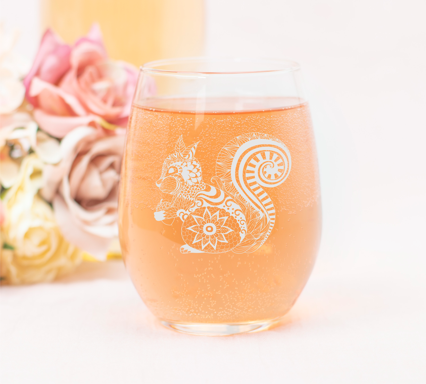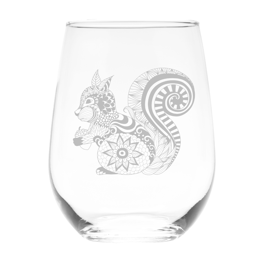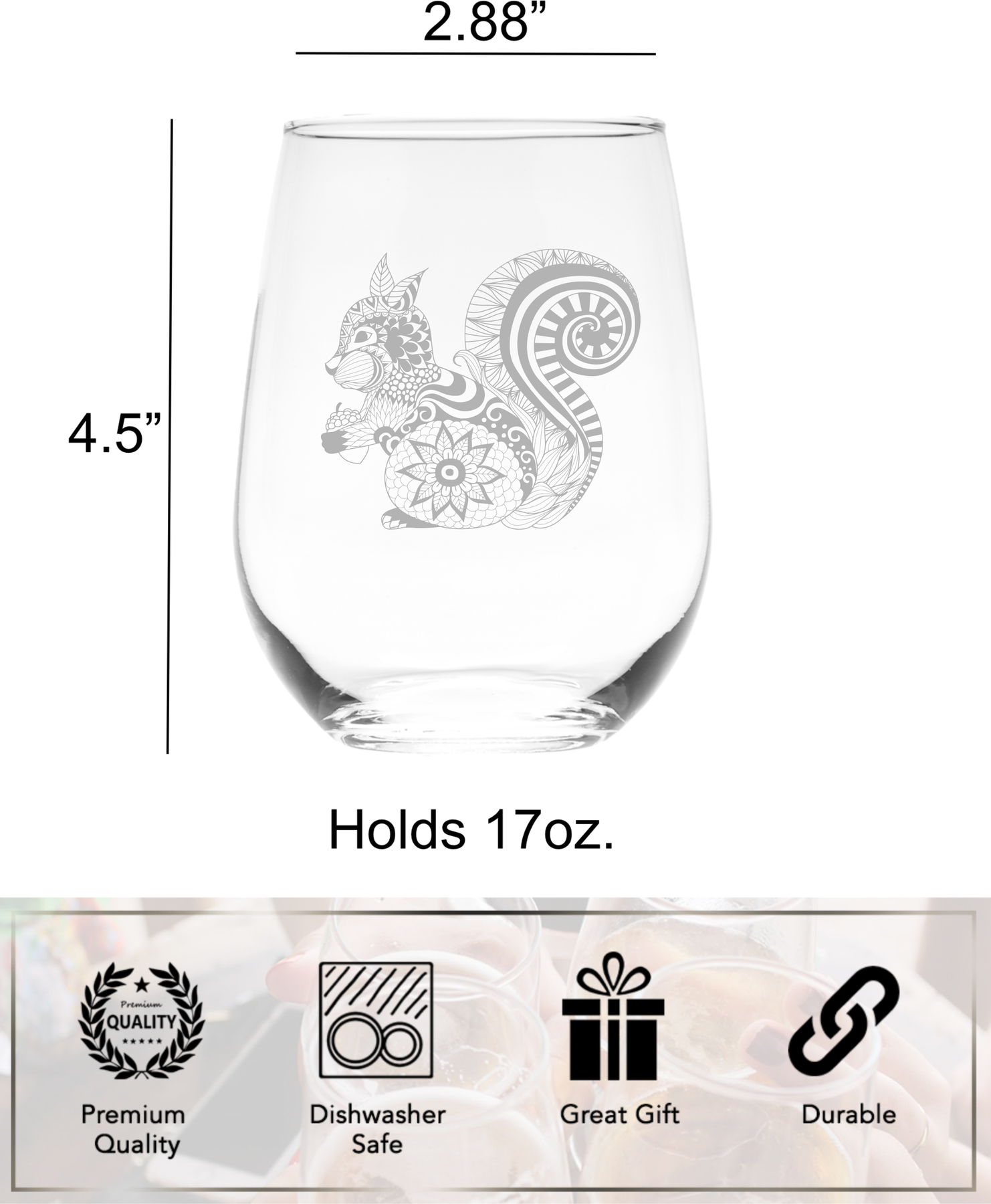 Add a personal touch to your drinkware collection with this charming 17-oz stemless wine glass featuring a squirrel design. Perfect for both casual gatherings. and special occasions. The stemless design offers stability and a modern aesthetic, while being conveniently dishwasher safe for easy cleaning.