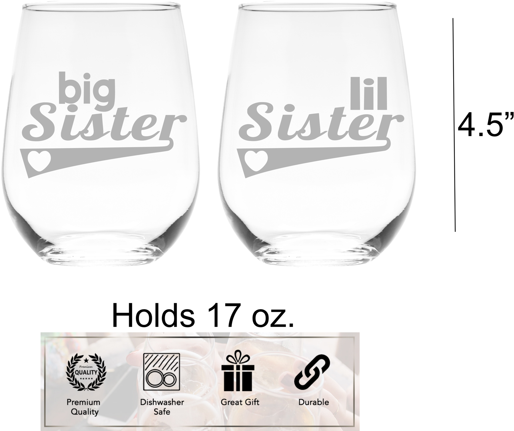 This 17 oz. big Sister, lil Sister stemless wine glass is dishwasher-safe and durable, perfect for everyday use. This elegant, lead-free glassware is designed with attention to detail. This glass also makes a great and elegant water and juice glass.